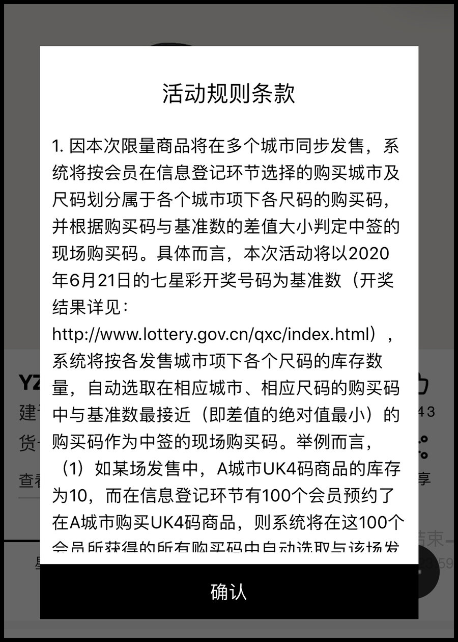 最重要的是,官方此次公布了中奖基准数 —— 2020 年 6 月 21 日开奖的七星彩(8205933),离这个基准数越近的购买码获得购买资格的几率就越大,更多详细发售细则各位可以点击「活动规则条款」自行了解。