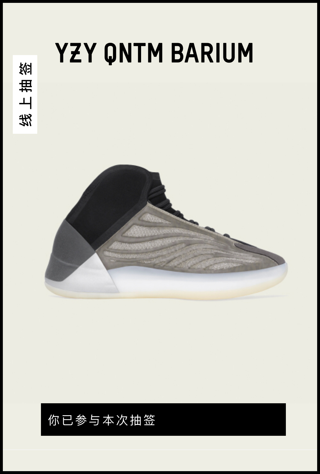 曝光多年却从未在国内正式发售的篮球鞋 Yeezy QNTM,终于在今早开启了抽签登记,你上跑道了吗?