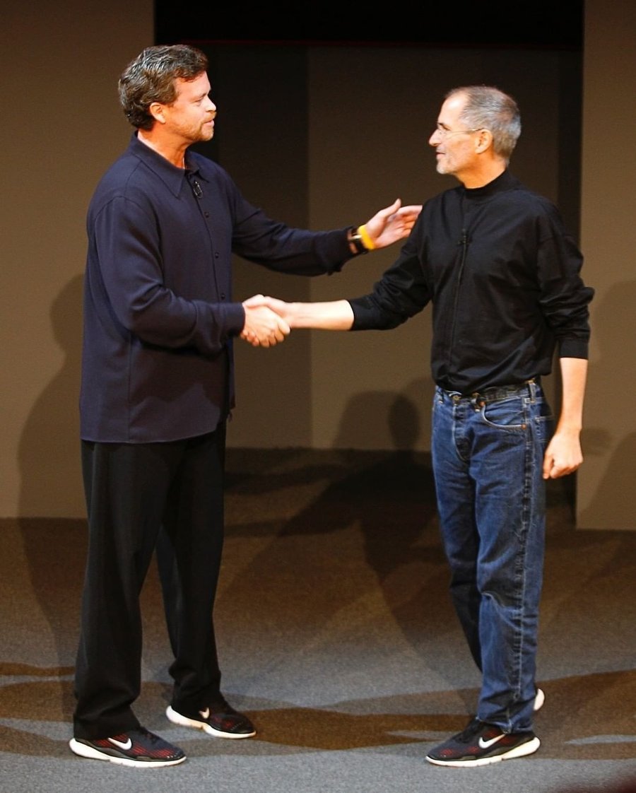 乔布斯确实对跑步鞋钟爱有加,除了多款 NB 鞋型,还上脚过当年时髦的 Nike Free 跑鞋。
