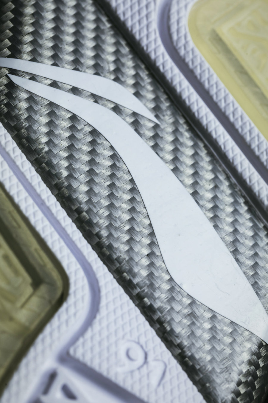 中足金属银色碳板是以特殊工艺打造,确实是如假包换的碳纤维材质,呼应鞋面的设计风格。