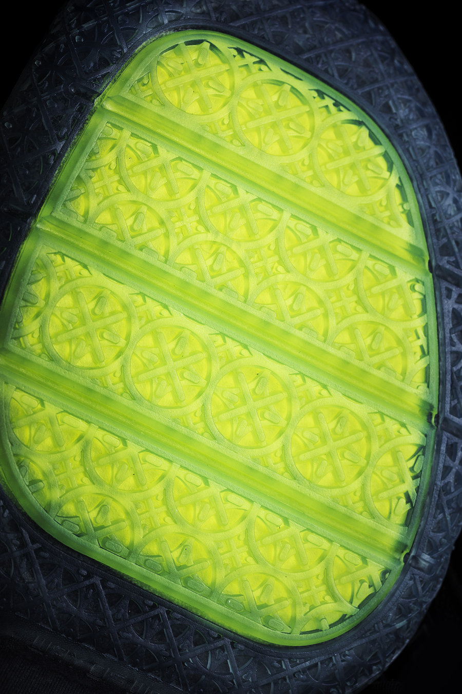 立体大碳板配置自然不用多说,中间圆形部分印有与鞋面呼应的图案,颇具新意。