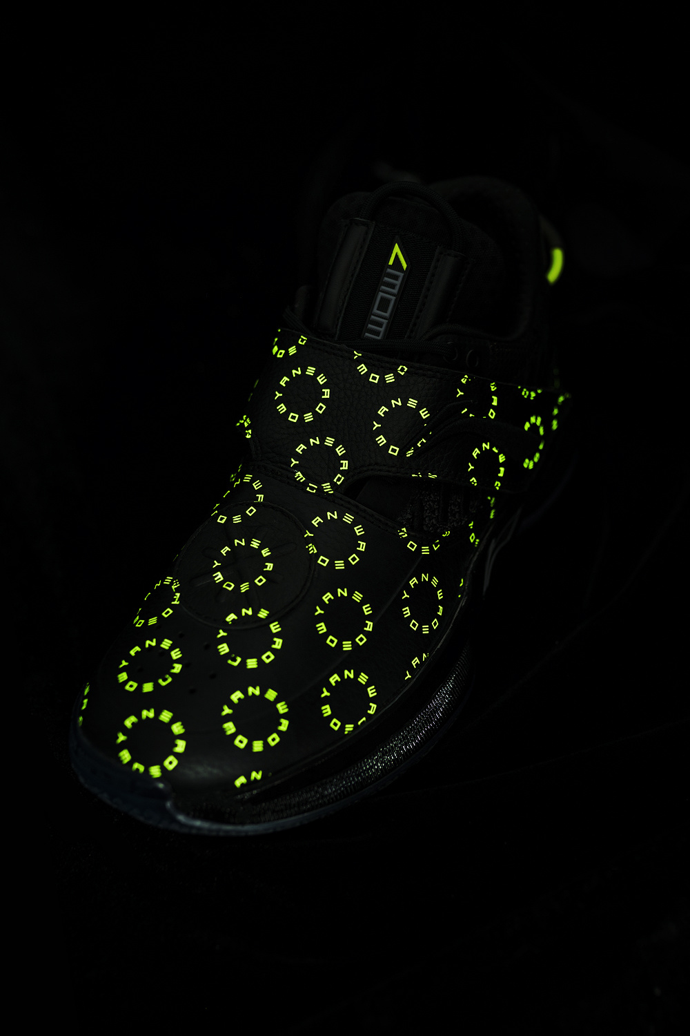 小编关灯后果然发现了这双鞋最大的惊喜:鞋面绿色图案全都是夜光的!