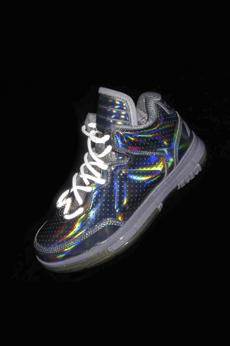 银色鞋面本来就有酷炫科幻气息,再加上炫彩反光,真是想不多看几眼都难。
