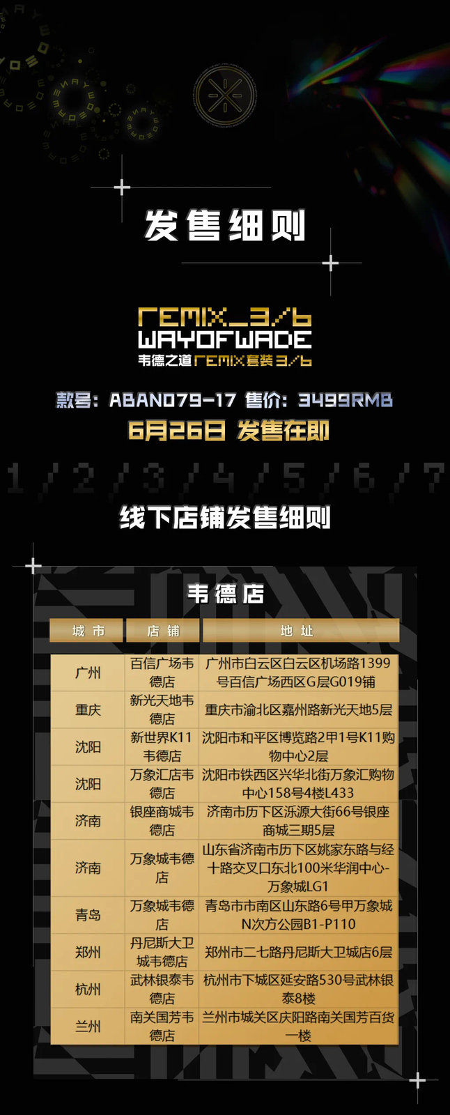 每次都很抢手的「韦德之道 Remix 套装」又来了,最新的 Remix 3/6 套装后天发售。