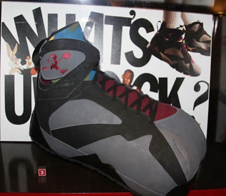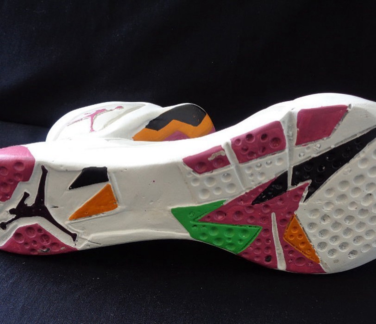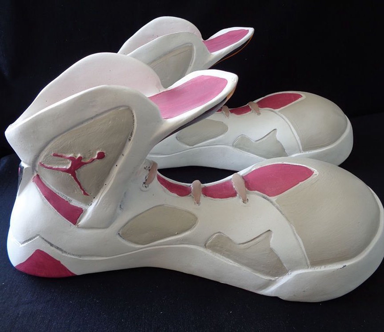 近日,海外潮流曝料账号 modernnotoriety 释出了多张用于《宇宙大灌篮》动画中的道具,Bugs Bunny Size x Air Jordan 7’s promo 样品。 分别有裁片版本的波尔多配色和黑白配色,整体造型都是以动画中的设计制作而成。 另外还有石膏版本,不知是当时的场务道具,还是粉丝的自制,颜色及细节把握都非常到位。 Pic via: modernnotoriety
