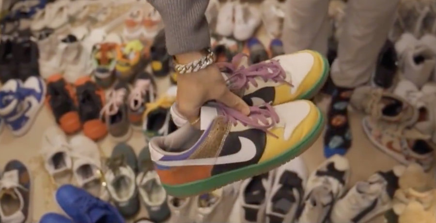无论是刚发售的情人 StrangeLove x Dunk SB Low,还是已经成为经典的 Travis Scott x Air Force 1,都是他频繁上脚的通勤鞋。