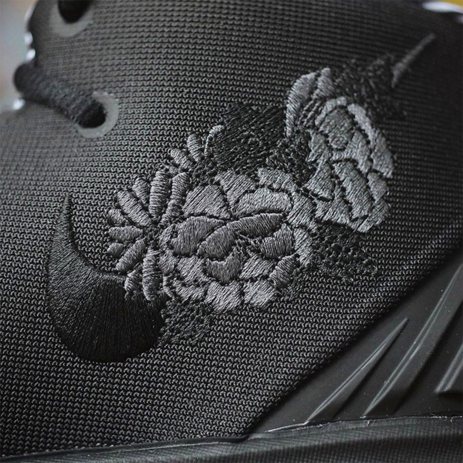 同时这款 Kyrie S2 Hybrid 还拥有两款配色,其中一款以黑色、深蓝为主调,在鞋帮下方加入眼睛图案以及镂空 Swoosh Logo 点缀。