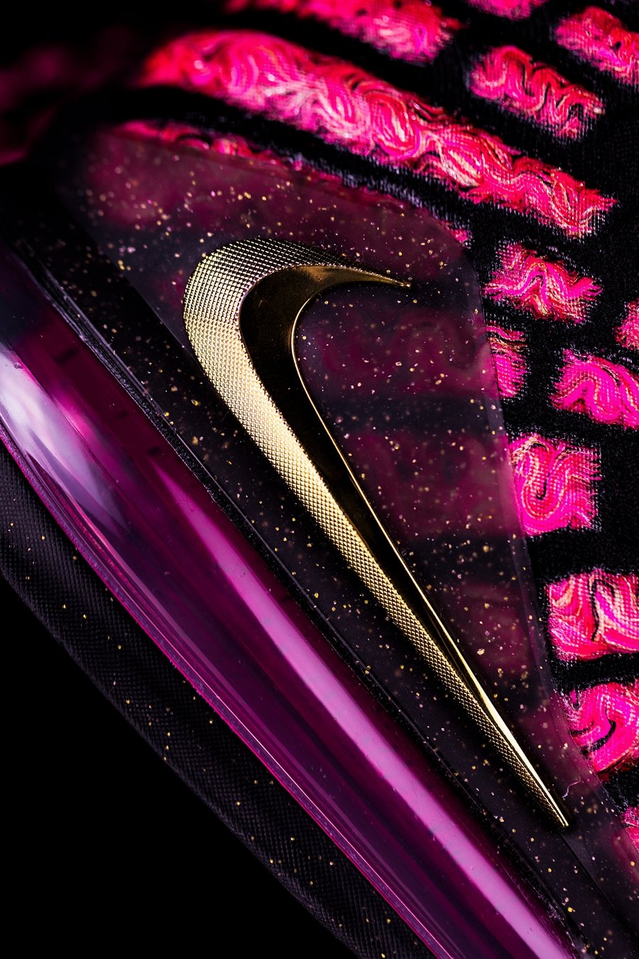 作为 LeBron 系列中最大体积的后掌气垫,本次同样采用淡红色示人,呼应 PHANTACi 标志性视觉元素。