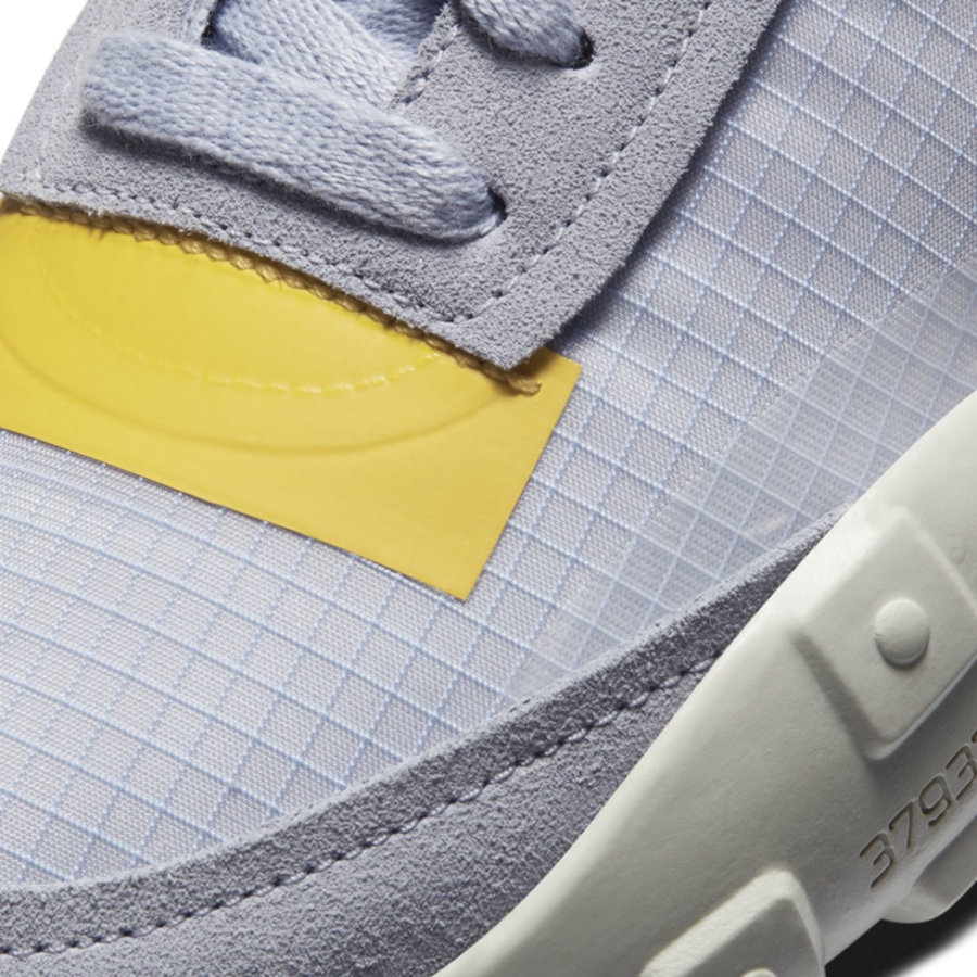 整双鞋采用灰色作为主调,鞋面采用格子布材质与麂皮拼接打造,鞋头带有黄色补强,同时侧身 Swoosh Logo 以棕色镂空打造。