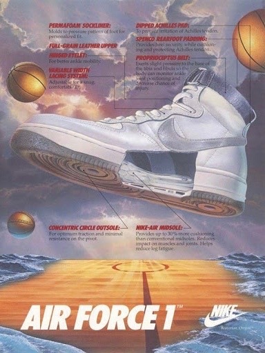 而这三段介绍也分别对应了 1983 年诞生的 Air Force 1、1986 年诞生的 Dunk High 与 1987 年诞生的 Air Max 1 三大 Nike 经典鞋款。
