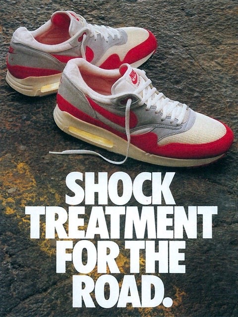 值得关注的是在每个盒子的下方都印有一段介绍,分别是 “1983 Air Force 1”、“1986 Be Ture To Your School”、“1987 Shock Treatment For The Road”。