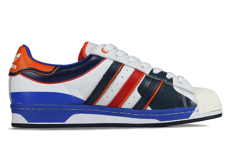 整双鞋采用皮革材质打造,标志性贝壳头以白色呈现,而鞋身中部涵盖海军蓝、红色、橙色以及蓝色,呈现出浓厚复古韵味。