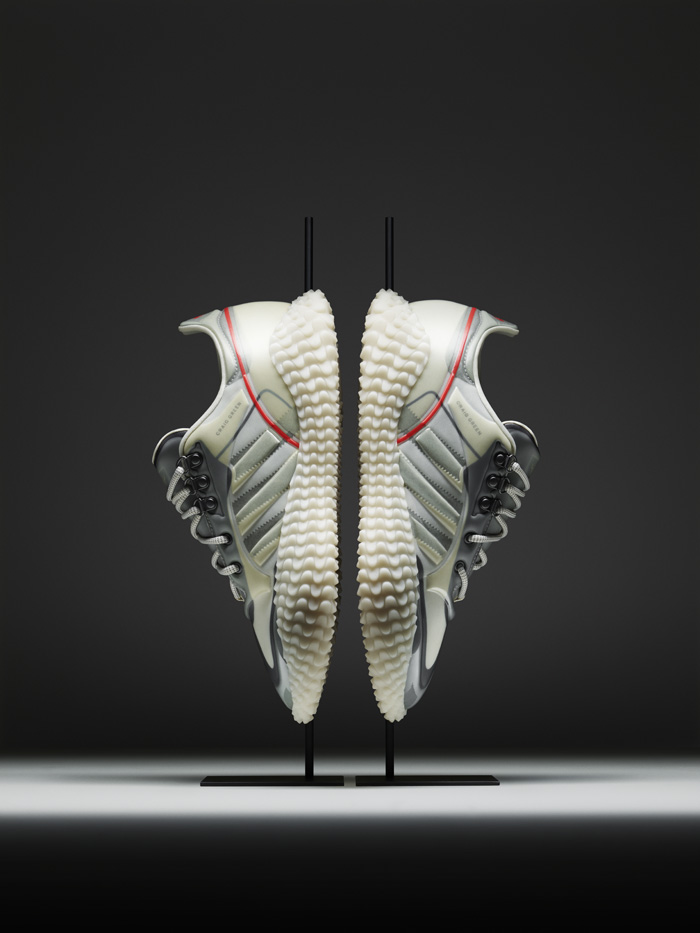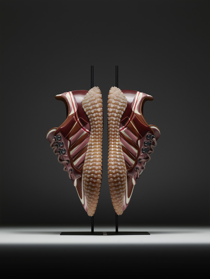 CG Graddfa AKH 则将 adidas Kamanda 鞋底与鞋面的巧妙衔接,如同爬行动物般将透明的外底包裹住整个鞋面,尽显犀利造型。