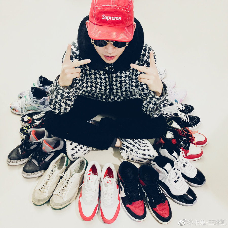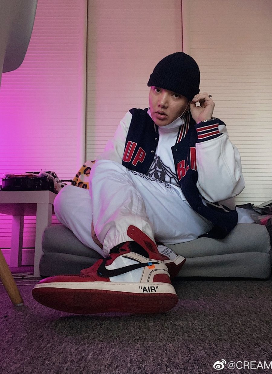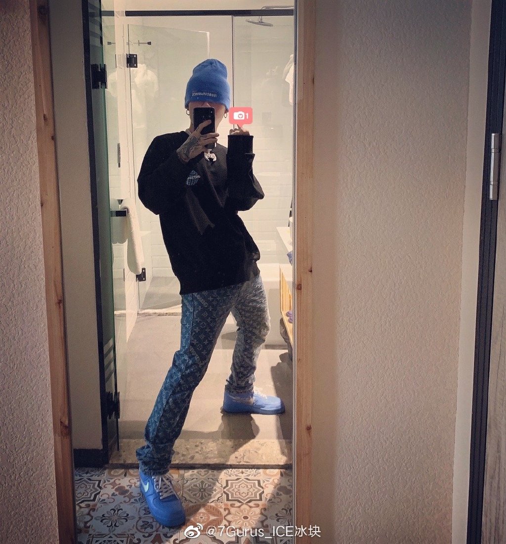 在 ICE 微博可以看到他经常秀这双联名,还选以 Louis Vuitton x Supreme 天价联名牛仔裤搭配,一身下来可能就要大几万。