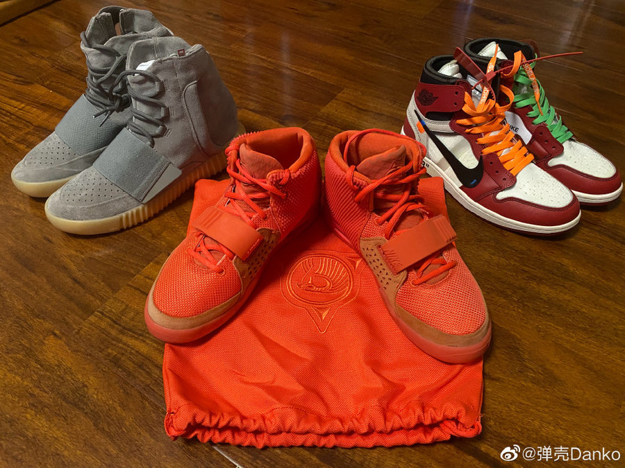 结果一看,三兄弟分别是 Yeezy Boost 750、Air Yeezy 2 “Red October”,外加 OFF-WHITE x Air Jordan 1 “Chicago”,加起来要十几万...