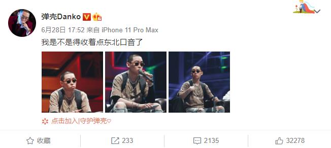 在节目中频频爆出搞笑段子的弹壳,在微博还自嘲,“我是不是得收着点东北口音了 ”。