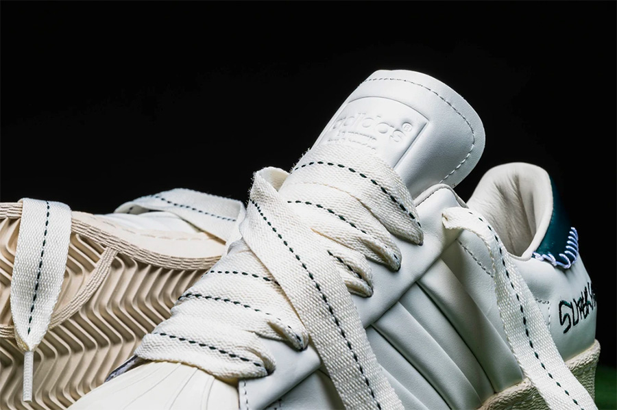 粗犷的车线细节,手写体的 SUPERSTAR 字体刺绣,都让这双鞋在清爽之余,又有独特的街头个性。