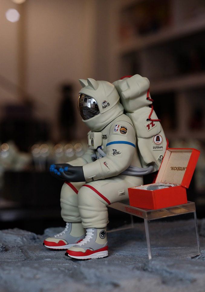 早在 2004 年就开始着手创作潮流玩具,因对球鞋的喜爱逐渐确立自己独树一帜的风格。