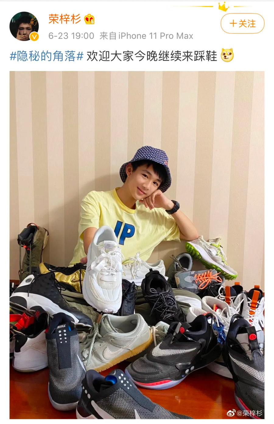 借着踩鞋梗他还自己发了条微博,展示了一下自己的球鞋收藏,并发文:欢迎大家来踩鞋。
