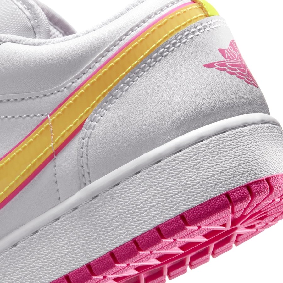 凭借低帮易穿脱,且轻便透气的亮点,让低帮 Air Jordan 1 Low 成为今年夏天的热门球鞋。 就在今早,又有一款全新小白鞋主题配色发布官图,一起看看吧! 经典的低帮造型,搭配纯白色皮革鞋身,黄色的 Swoosh 搭配可爱粉色勾勒,十分亮眼。 同时还有一双中帮 Air Jordan 1 Mid 也释出同主题配色,极有清爽的穿着体验,又是夏天超抢手的小白鞋。 这两双 Air Jordan 1 系列新品,能否成为今年的宝藏球鞋?