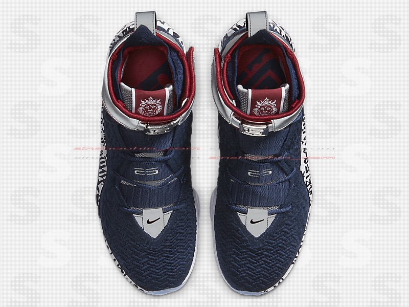 这次编织鞋面改为海军蓝色,鞋身周围添加 LeBron 4 标志性的波浪形 TPU 材质,白底蓝字依旧是致敬经典,鞋帮部位的银色魔术贴绑带搭配酒红色细节点缀。