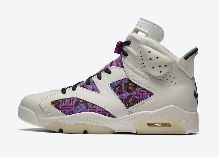 延续前两款 Air Jordan 6 的设计风格,采用几何图腾装扮,以棕黄两色点缀。