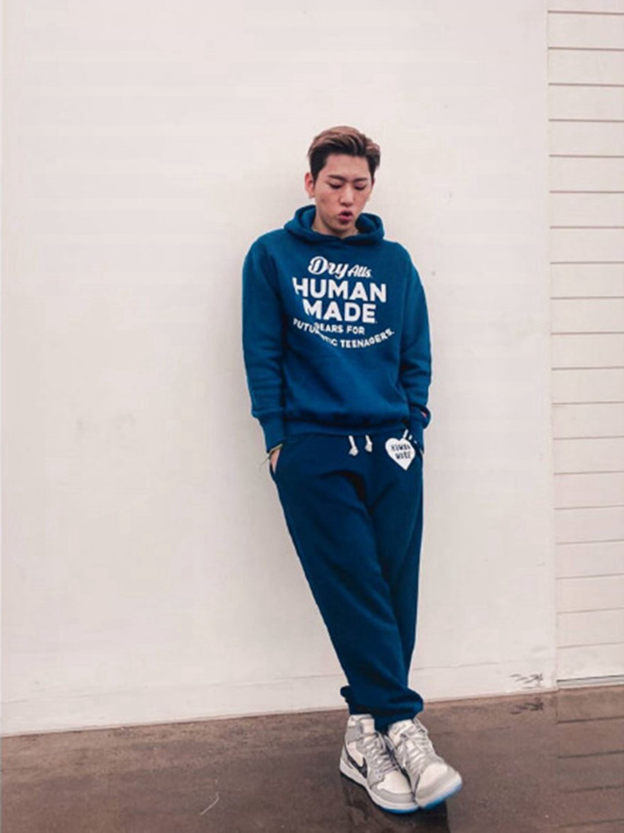 作为韩国人气歌手的 ZICO 也于近日上脚了高帮 Dior x Air Jordan 1,以整身 HUMAN MADE 搭配。