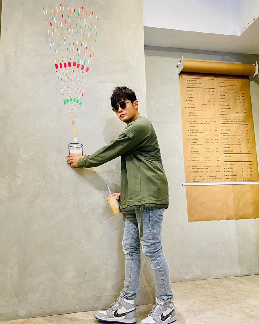 同样是明星当中的鞋头,萧敬腾这次也是高调晒出 Dior x Air Jordan 1。