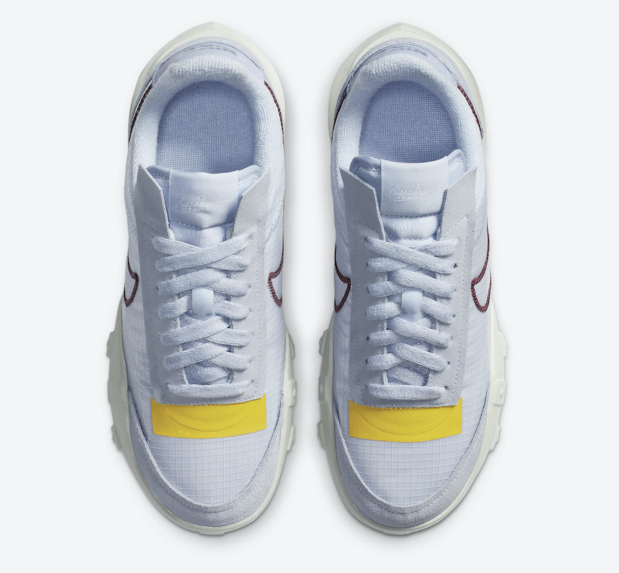 鞋身以 Nike Waffle Racer 的标志性轮廓为蓝本,选以细腻皮革和蝉翼材质打造。