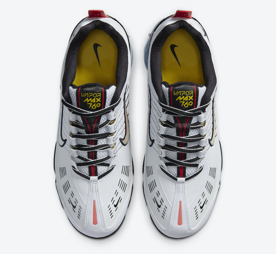 鞋舌处缝有黄色 VaporMax 360 字样以及红色线条,给整双鞋的吸睛效果提升不少。