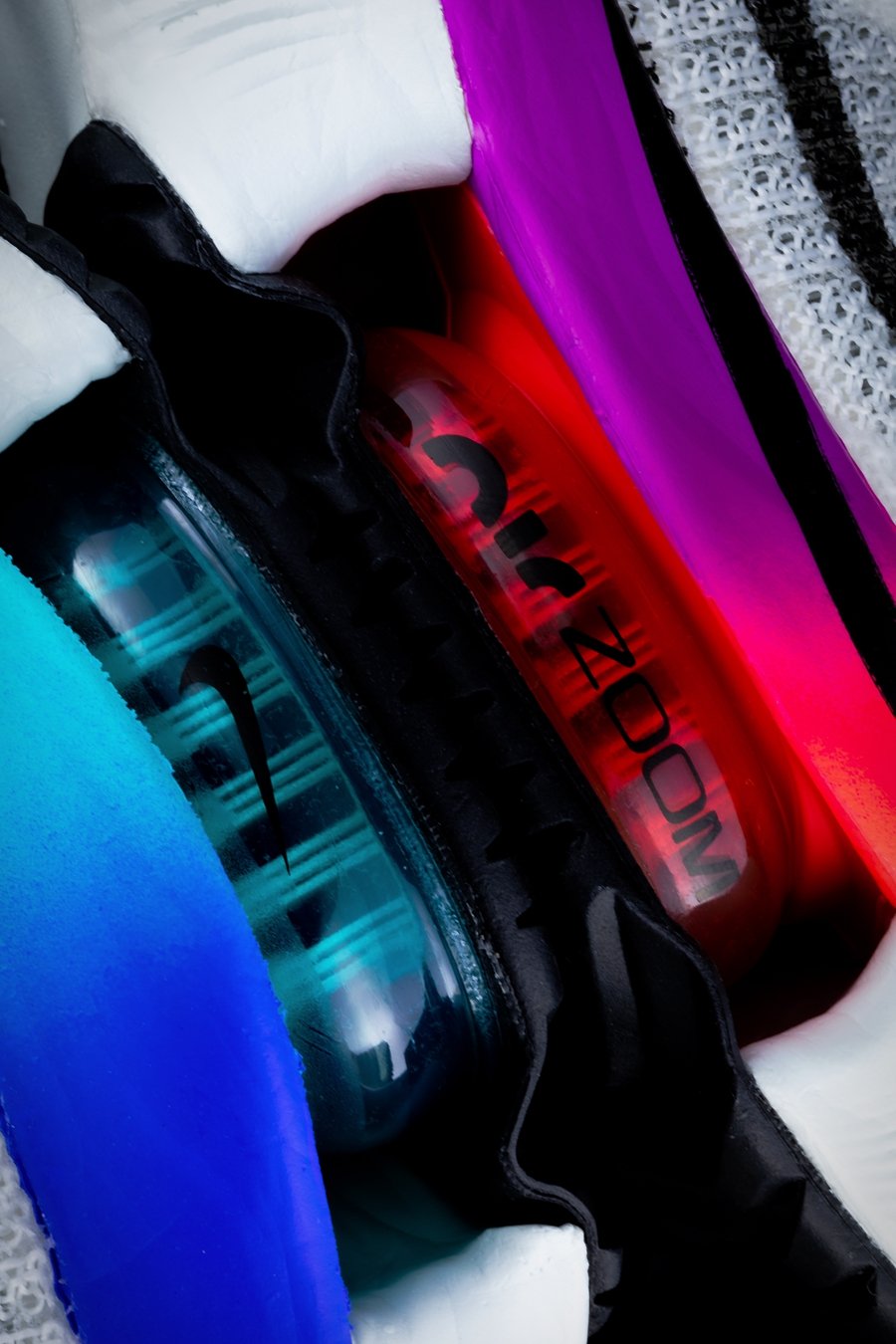 两种出色的缓震材质,搭配复合板及前掌两块 Zoom Air 气垫加持,中底配置堪称豪华。