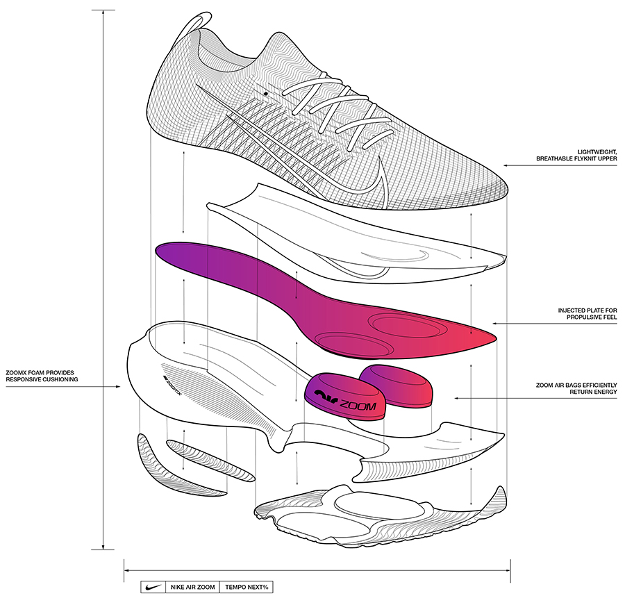 如果说旗舰款是为金字塔顶端的精英跑者参加比赛而专属打造,那这双 Nike Air Zoom Tempo NEXT% 在最大限度继承精髓的同时,让广大跑者爱好者能更加轻松的入手投入到跑步训练中,感受这波科技革命所带来的强大升级。