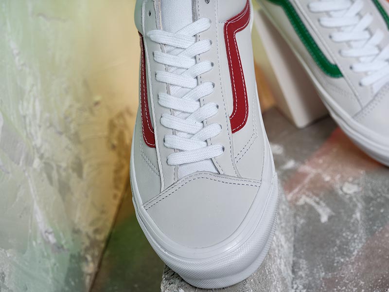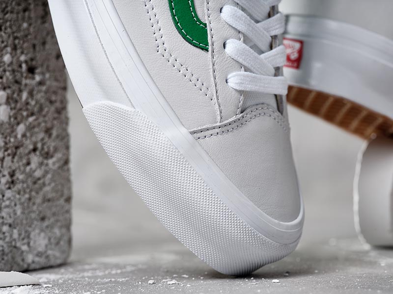 配色方面,均以简洁的白色为主体,鞋腰处则分别以红、绿和蓝色的侧边条纹加以点缀,整体还原 Vans 早期美产鞋款的复古美感。