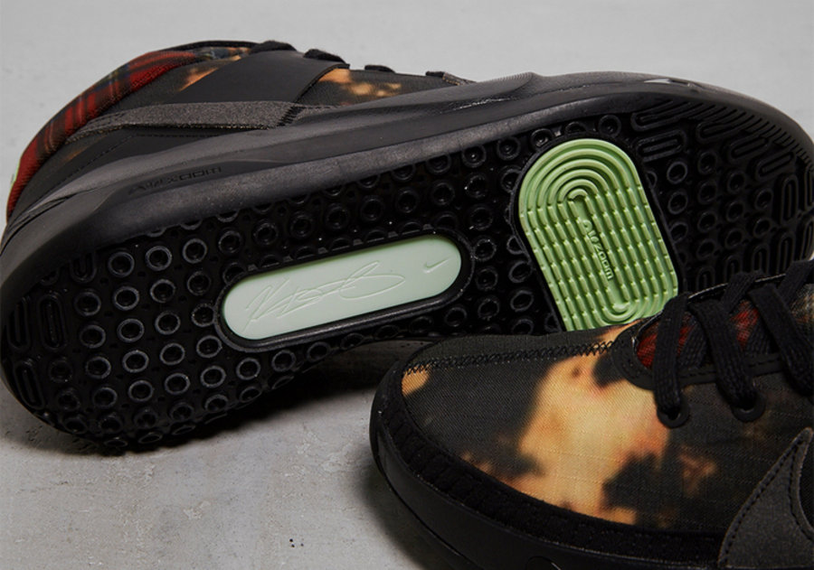 同时鞋舌处的 Kevin Durant、后跟、以及鞋底 Air Zoom 的位置均采用绿色呈现,并施以油漆风格表现,同内侧 Logo 相呼应。