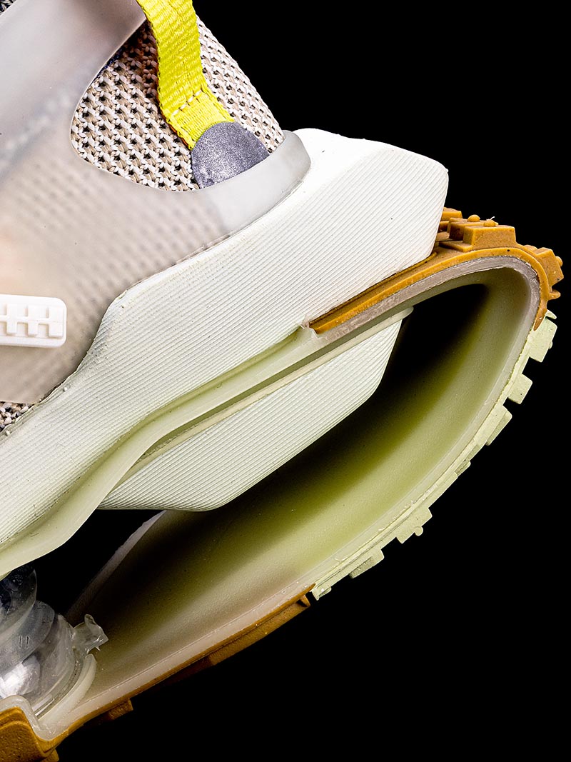 采用双层叠加 Zoom Air 搭配裸露泡棉替代原款的支柱设定,不仅提供前所未有的强大缓震,增高效果也是肉眼可见。