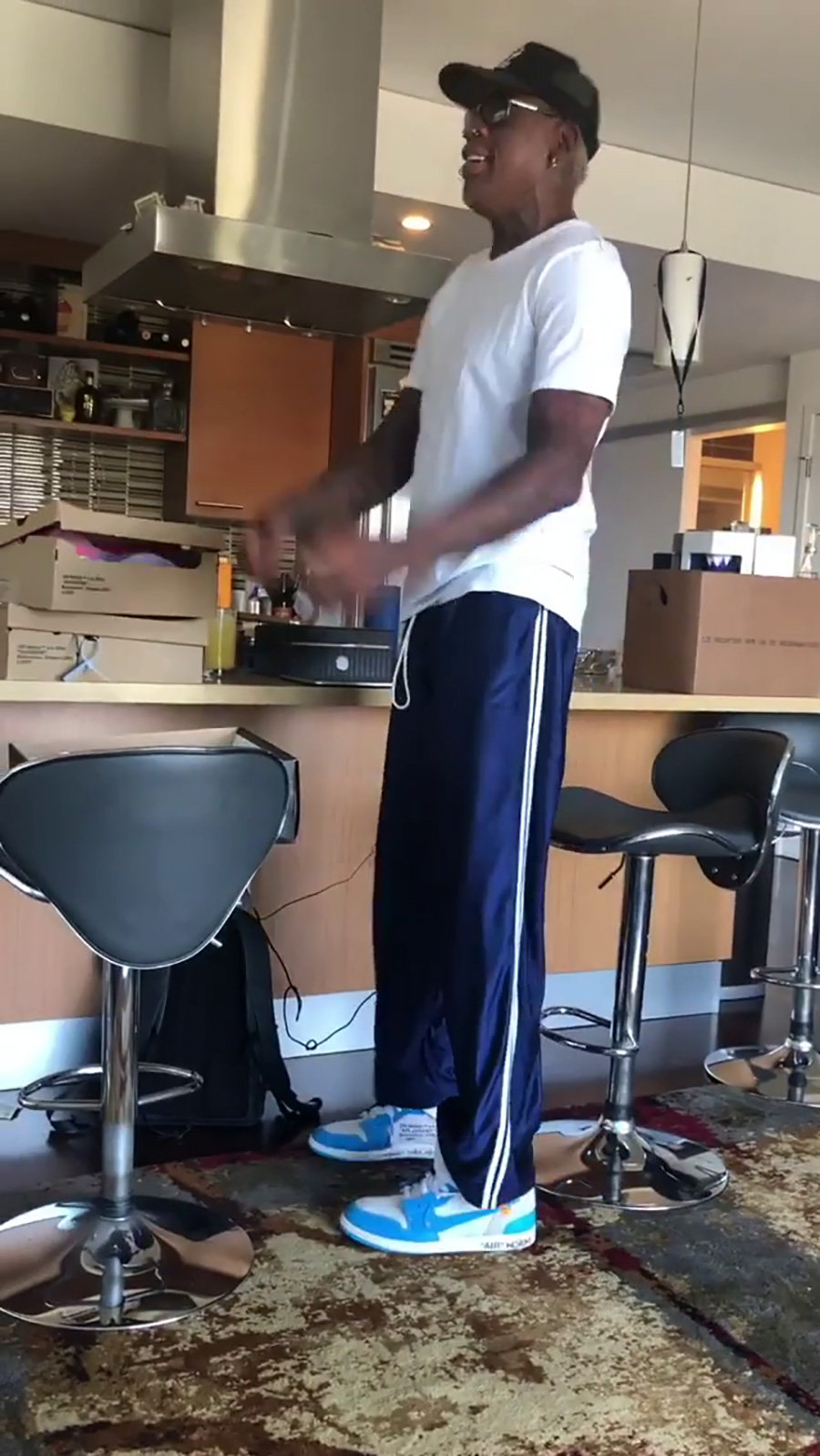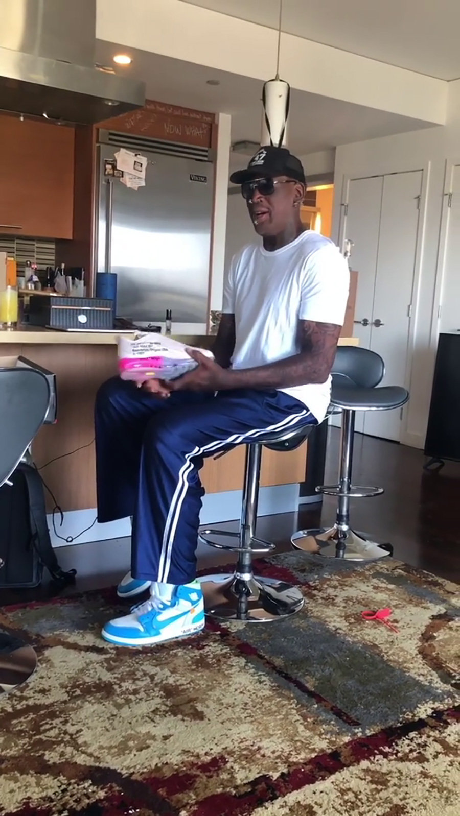 大虫罗德曼在自己的社交网络上发布了一段两分多钟的视频,开箱了刚刚收到的大礼包!