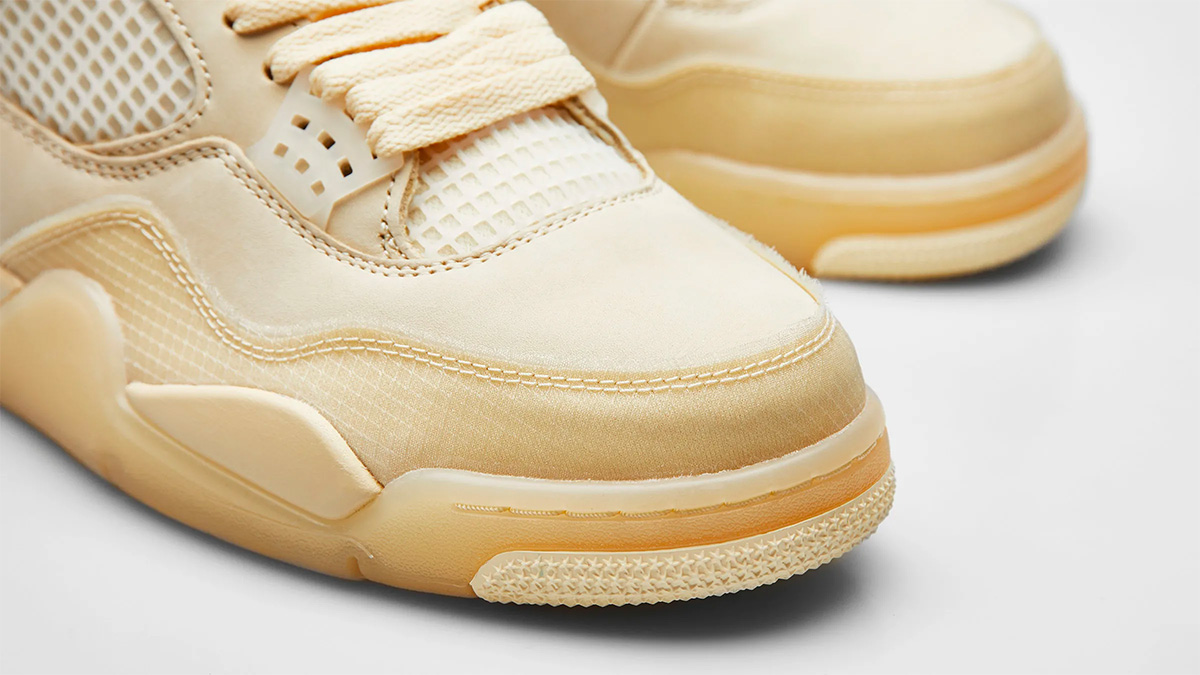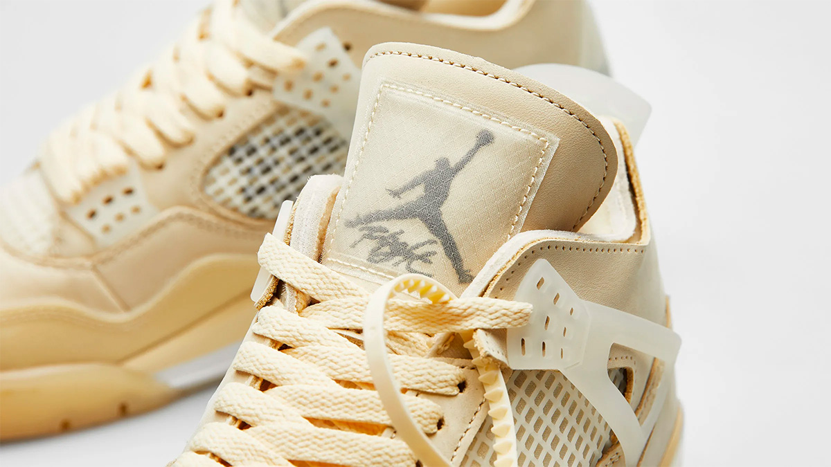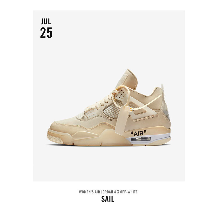 此次以诞生于 1989 年的 Air Jordan 4 经典鞋型为蓝本,打造了一款既有大地色风格,又格外时尚的 OW x Air Jordan 4 “Sail”(货号 CV9388-100)。