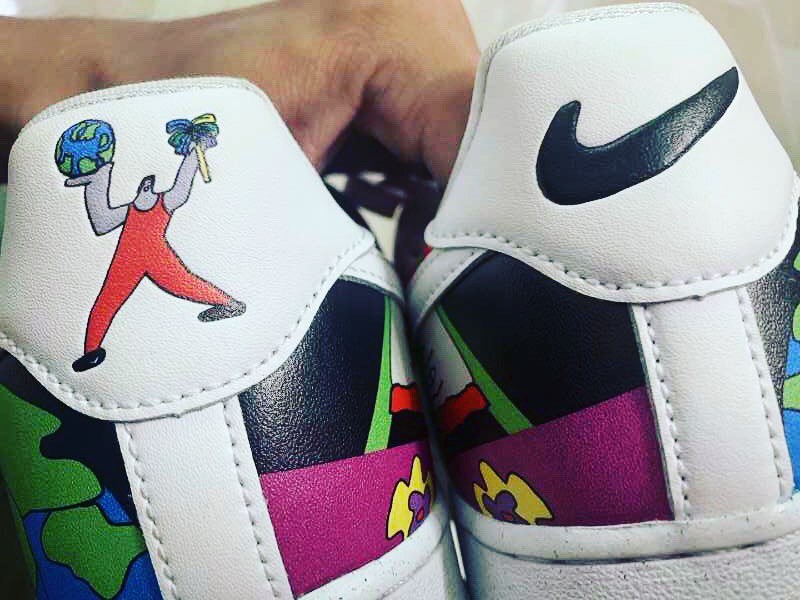 整双鞋以她的插画作品为主题,从鞋头铺满至鞋尾。
