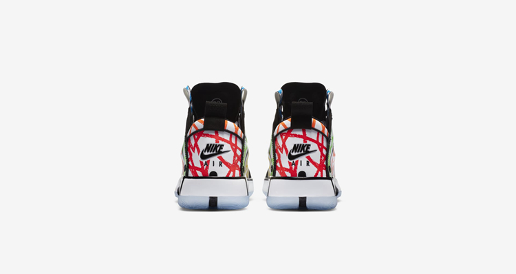 整双鞋的配色灵感来源于 Zion 弟弟 Noah 的涂鸦画作,整体以白色为底,类似蜡笔纹理的多彩线条勾勒鞋身细节,鞋面拼接处则辅以二次元装扮的黑色笔触覆盖,淡蓝色果冻大底收尾。