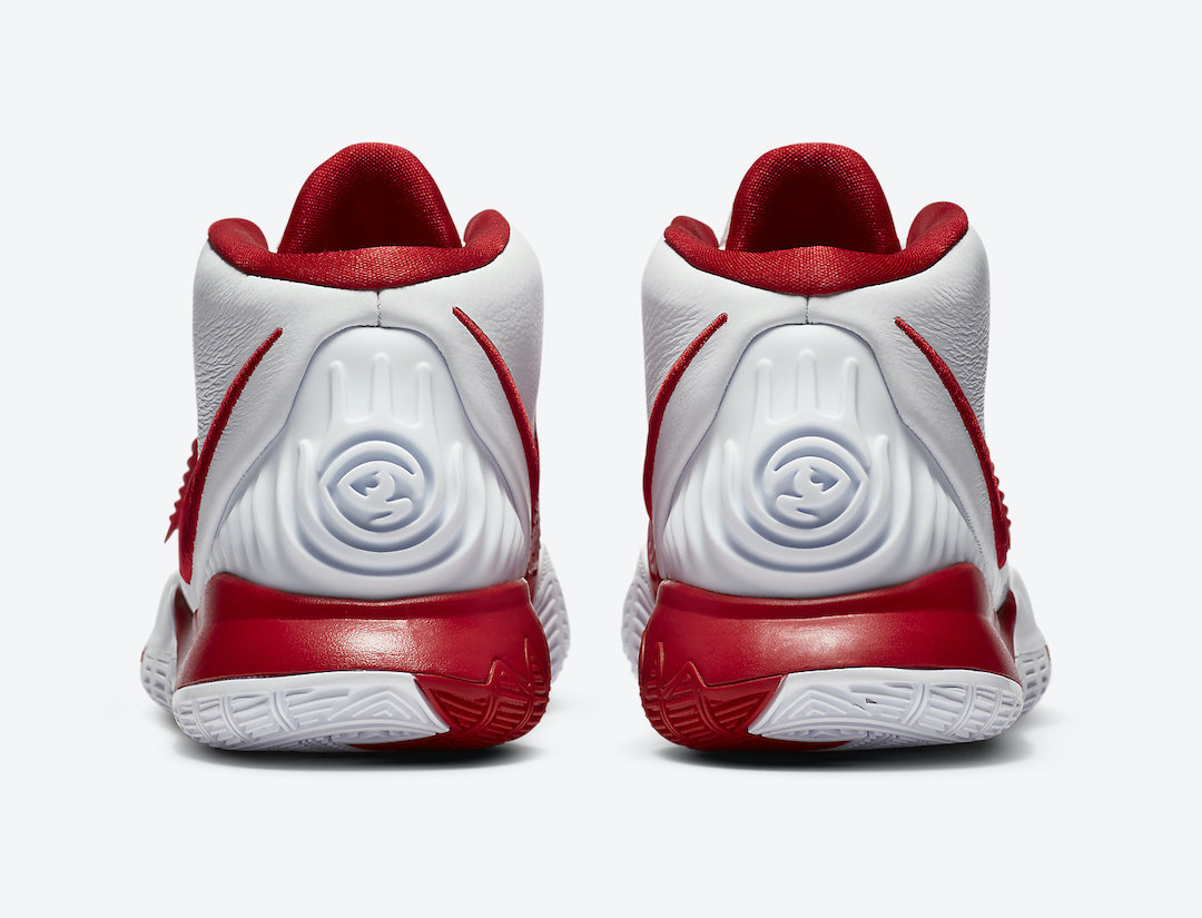 近日一双风格相对简约的全新白红 Nike Kyrie 6 “University Red” 正式登场,乍一看还以为是中国队配色。