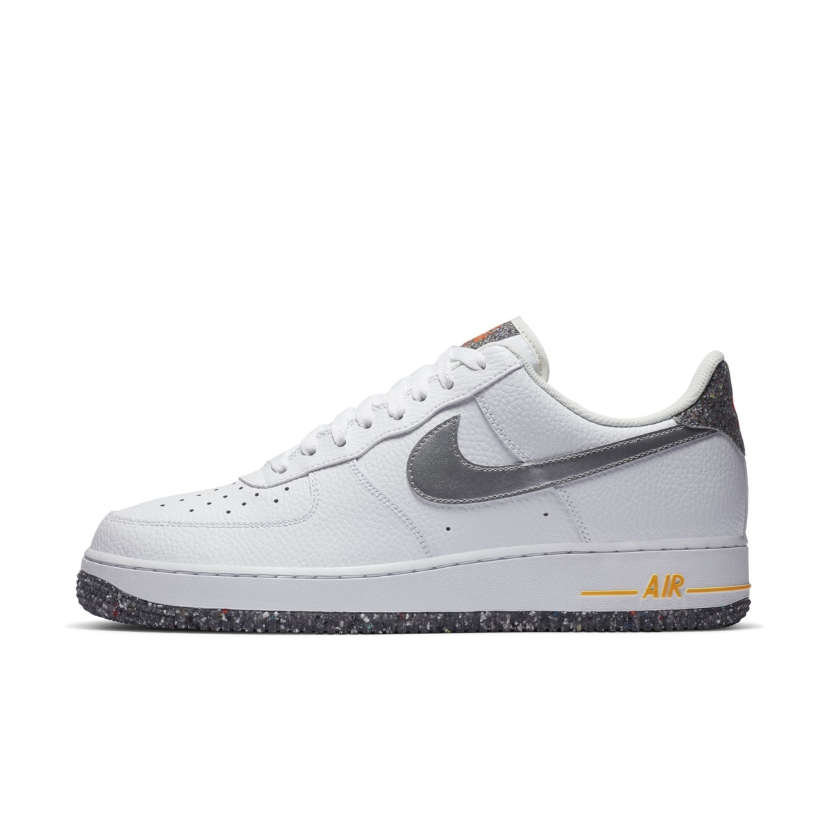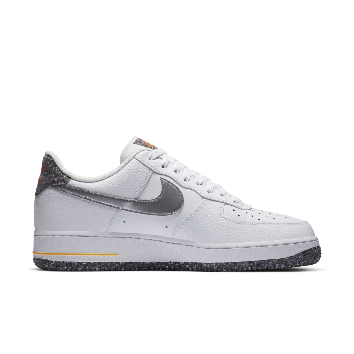 近期除了垃圾鞋 Space Hippie 系列,Nike 不少其他产品中也使用了回收材质。 两款 Air Force 1 释出官图,延续经典造型的同时采用环保材料。 两款配色分别以黑白为主色调,荔枝纹皮革打造,搭配银色 Swoosh ,颇具复古气息。 外底采用回收材质,灰色半透明橡胶中融入彩色颗粒。 鞋舌、后跟布料点缀也有与彩色颗粒图案,与鞋底设计相呼应。 将于近期发售,感兴趣的朋友不妨多加留意。