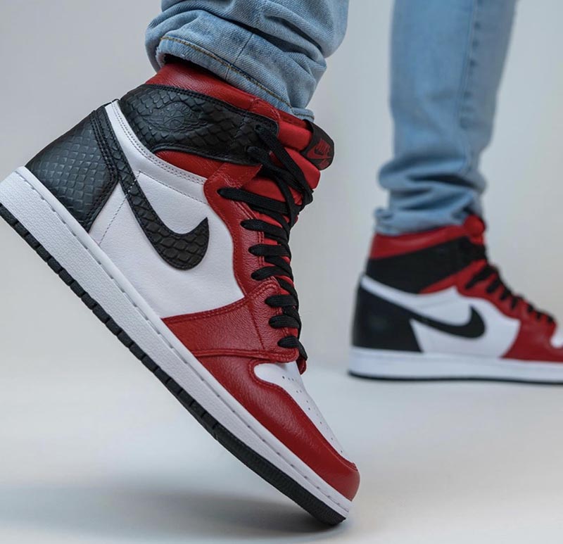本次鞋身以元年白红芝加哥为基础,后跟注入奢华的蛇纹加持!