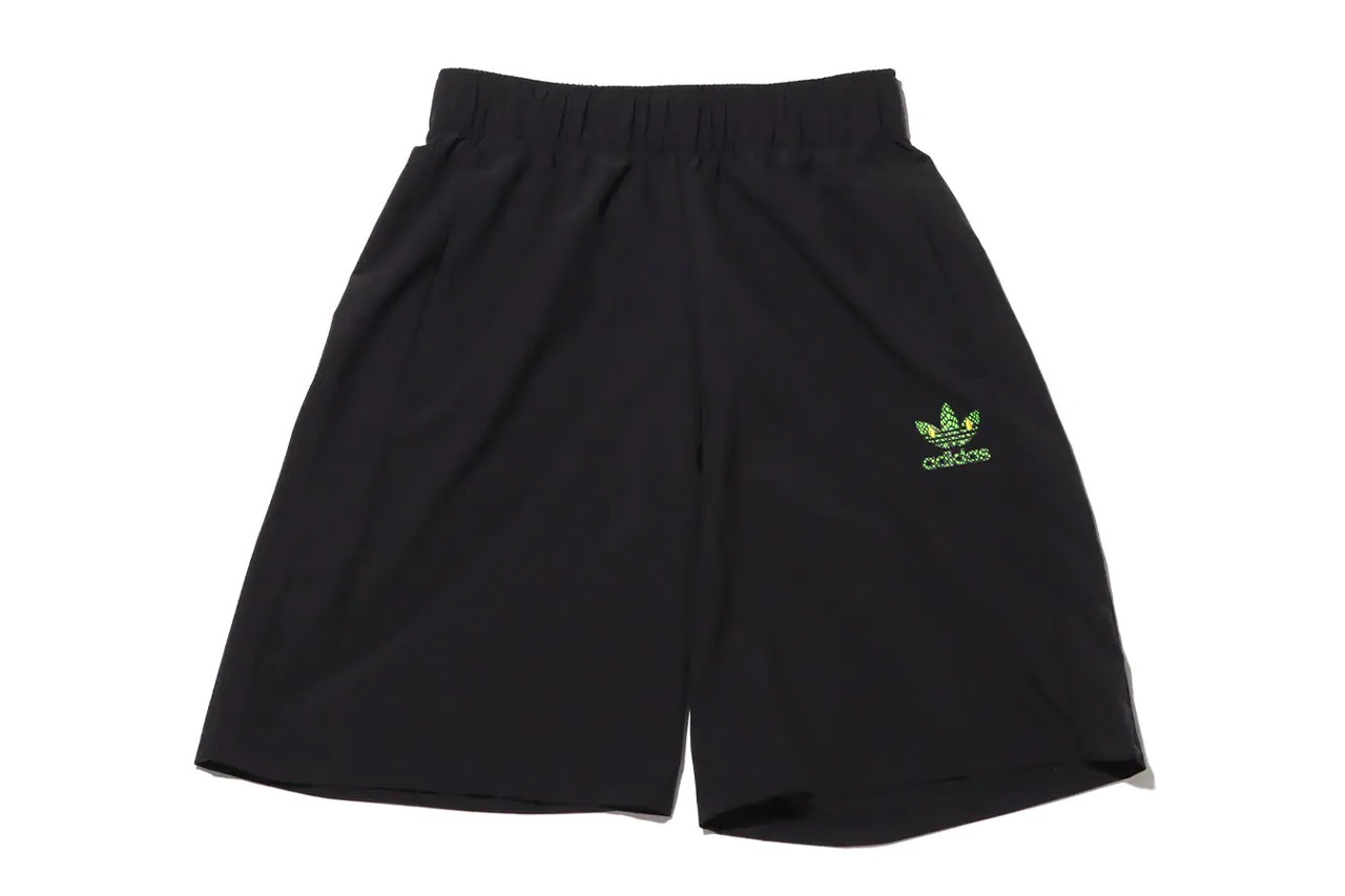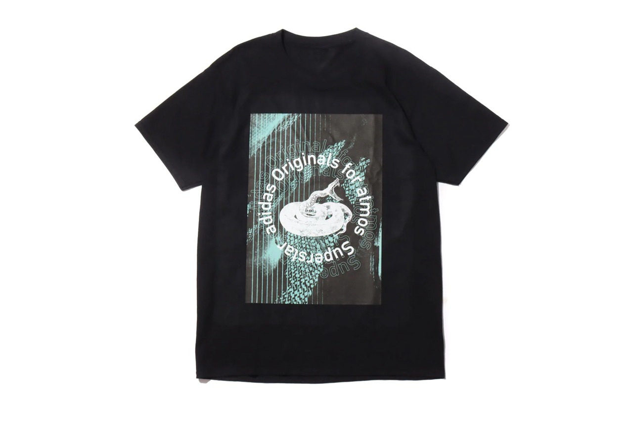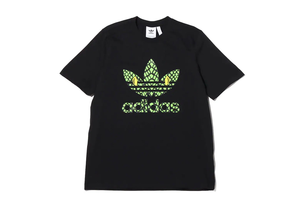 除了联名鞋款外,atmos 与 adidas 还就这一主题打造了 2 款 Tee 和 1 款短裤,皆为夜光蛇纹主题,在当季上身搭配效果也非常不错。