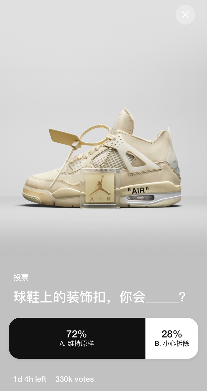 昨天 SNKRS APP 上还发起了一个投票活动,让你选择会如何处理球鞋上的装饰扣。