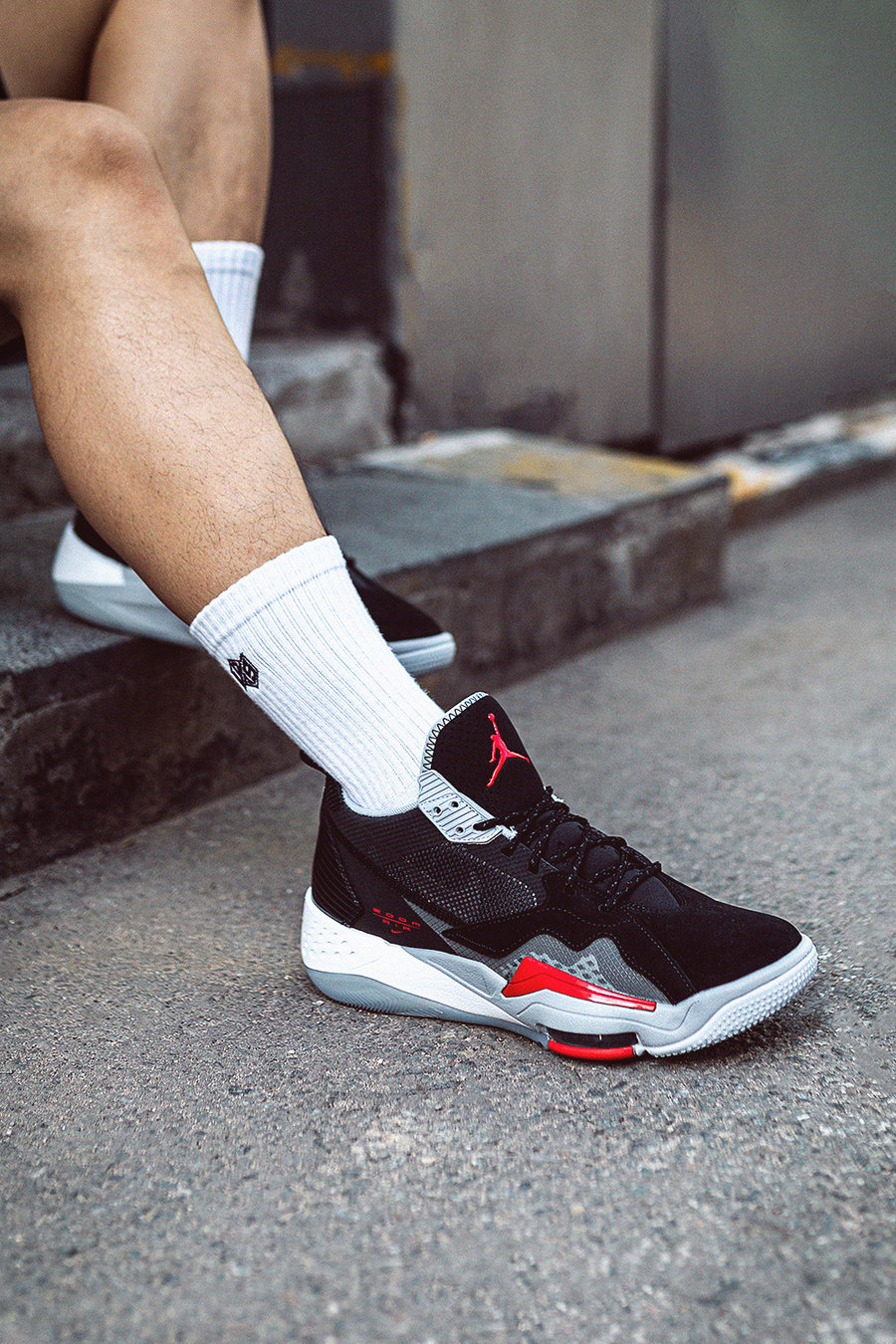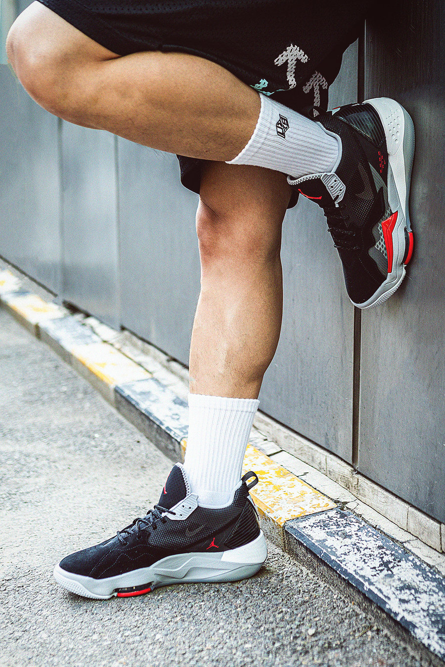 黑红配色承袭 Jordan 正代中的标志性配色,一眼便能看出鞋头处于 Air Jordan 7 实在是太像。