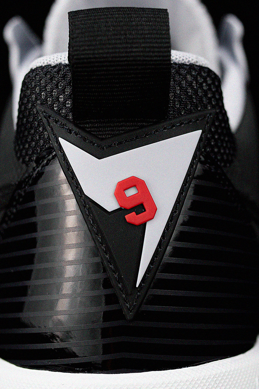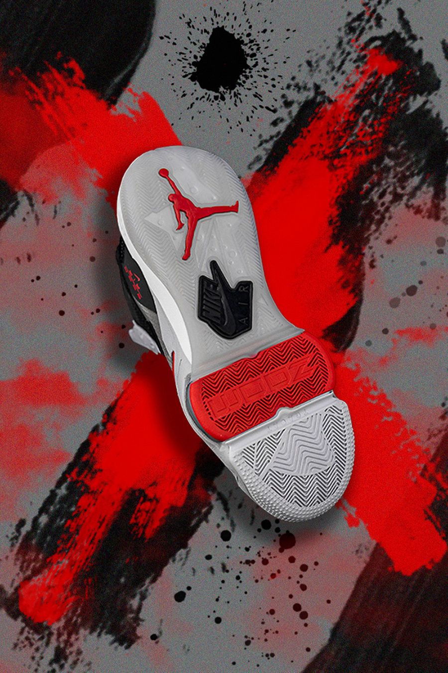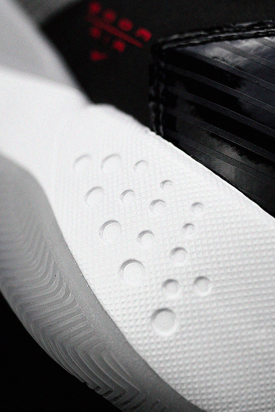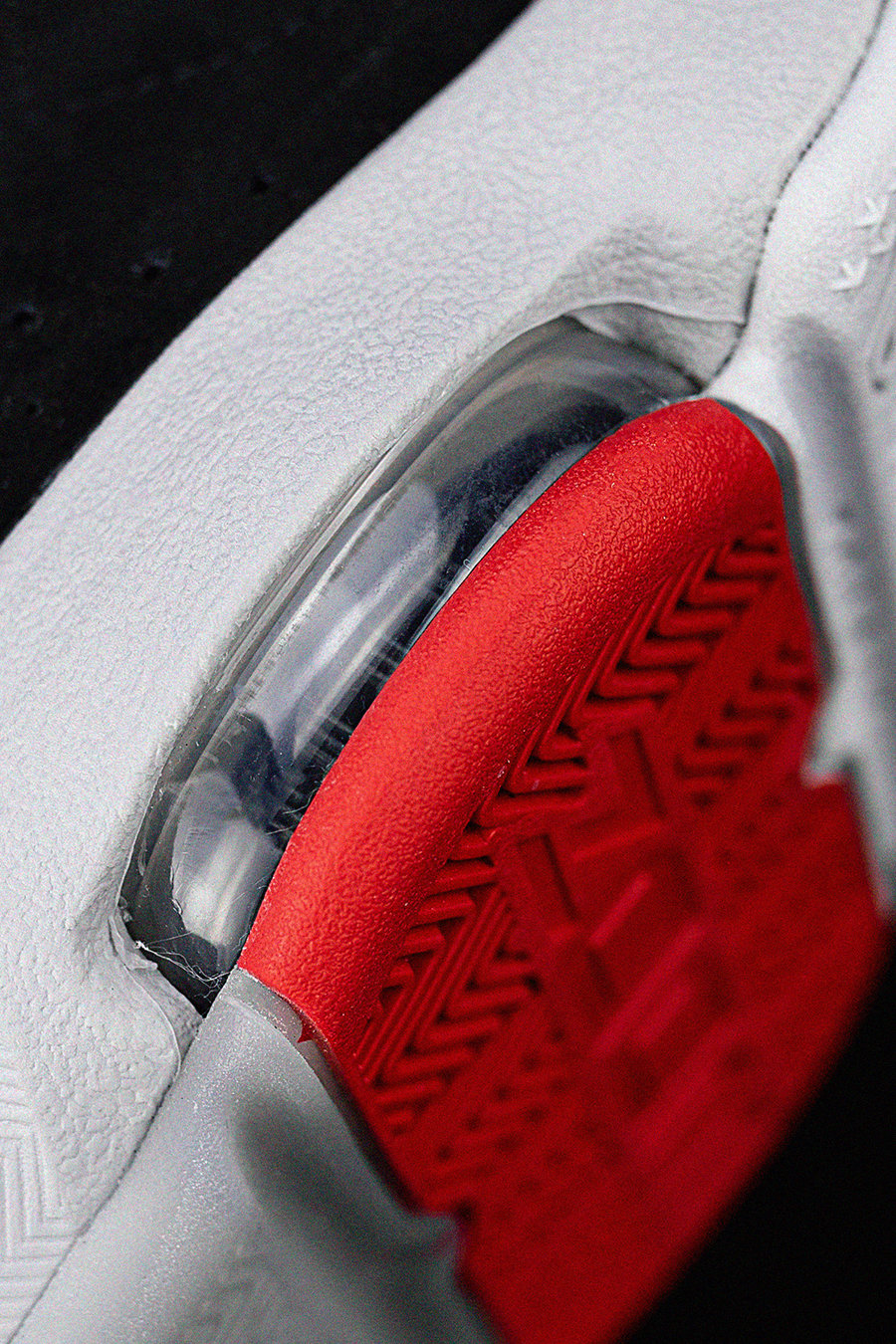 鞋舌采用黑色装扮,红色的飞人 Logo 点缀其上,黑红配色视觉冲击力超强。