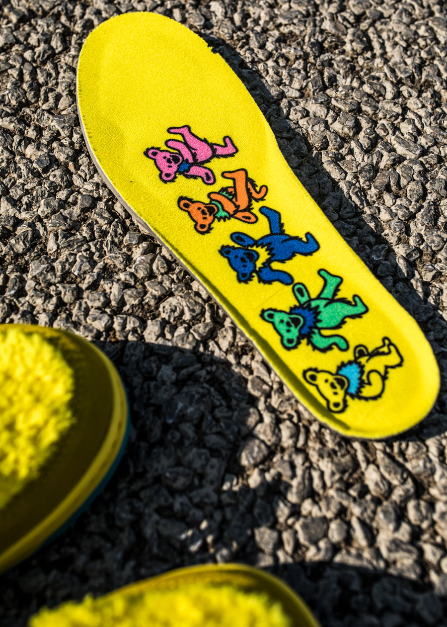 更值得一提的是,这双鞋还有个彩蛋,是一个藏在鞋垫气垫底下的 Grateful Dead 乐队标志。
