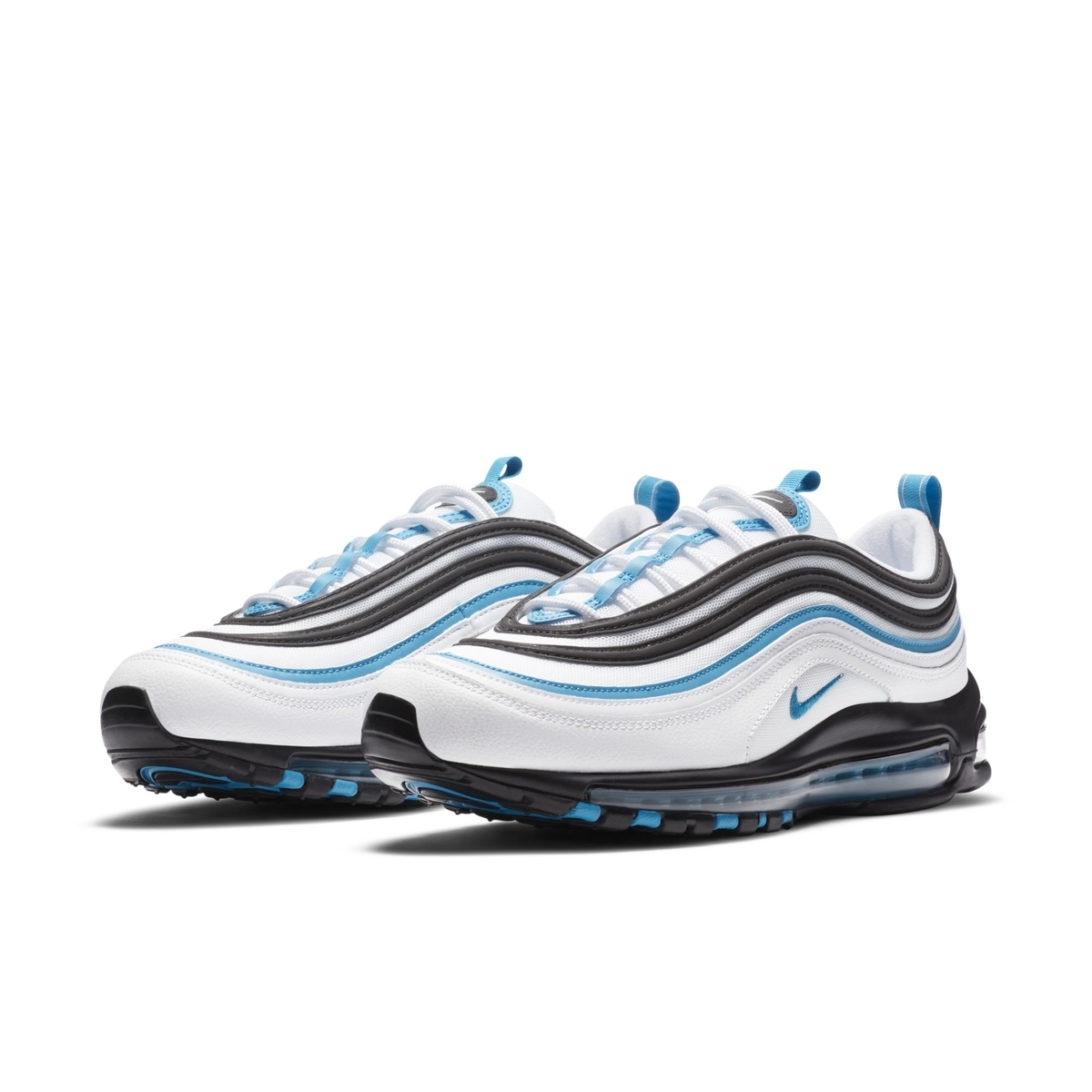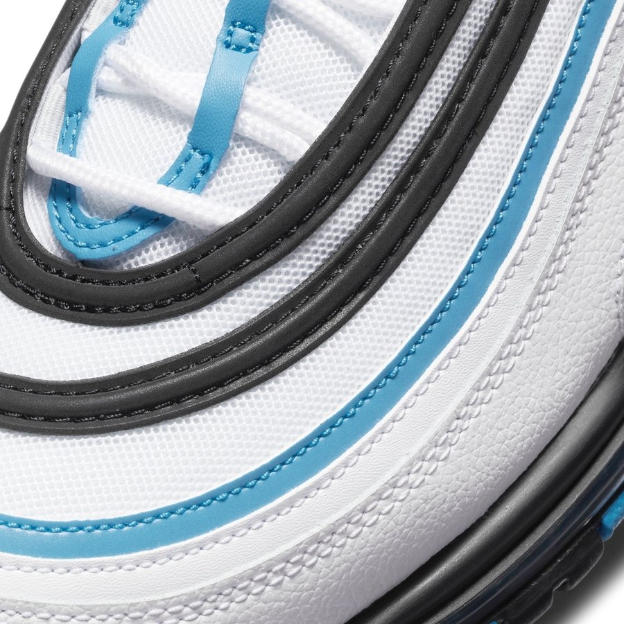 近几年复古风开始成为大潮流以后,Nike Air Max 97 就成为深受大众喜爱的鞋款。 近日又有一款全新配色官图释出,表现相当抢眼! 整双鞋最大亮点在于鞋面丰富的层次感被黑色、白色以及蓝色覆盖,吸睛效果十足。 鞋身中部还有一小块透明区域,蓝色 Mini Swoosh Logo 点缀在其中,起到画龙点睛的作用。 黑色鞋底搭配蓝色外露式气垫,完善整双鞋的设计。 遗憾的是这款全新 Air Max 97 尚未释出详细发售日期,我们还将持续关注并报道。