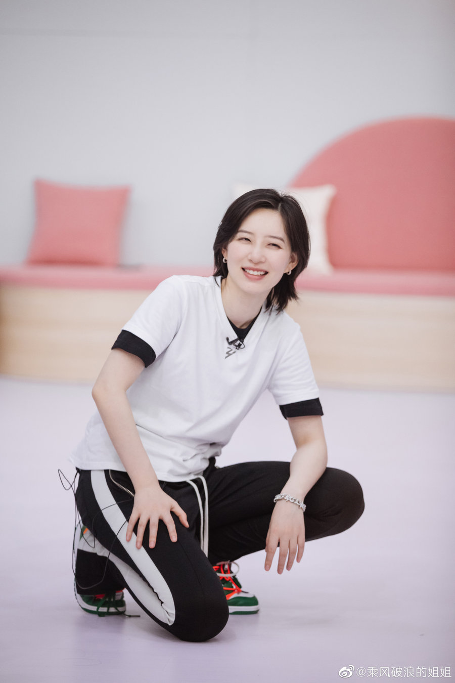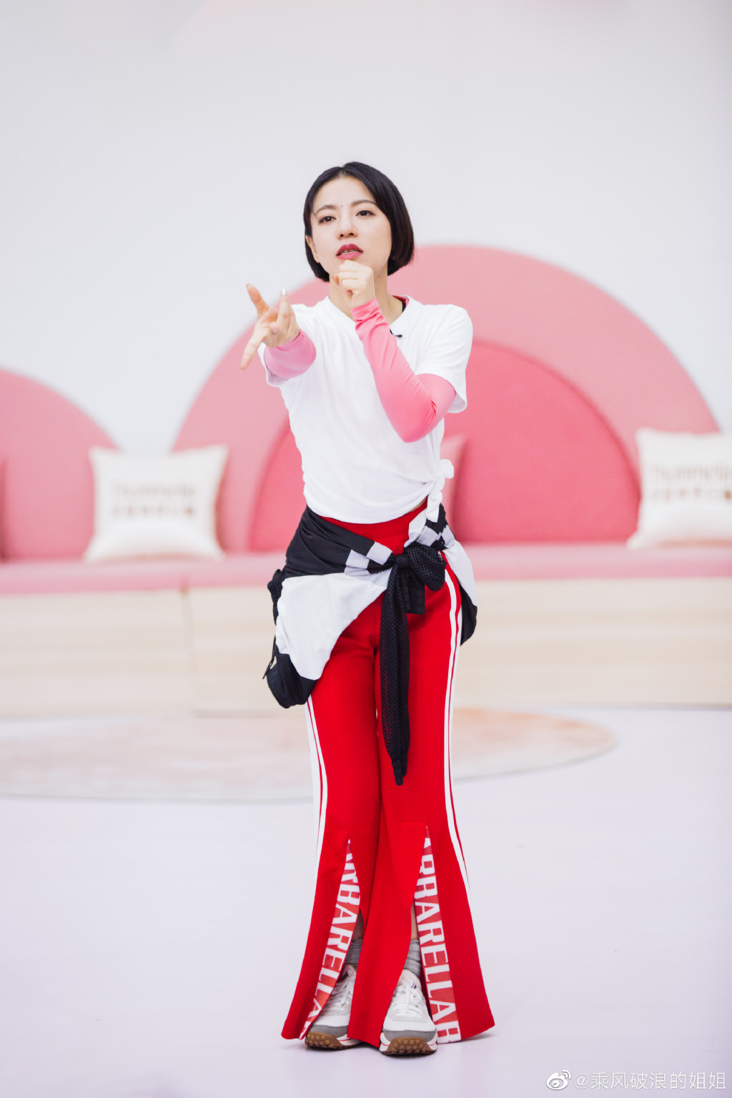 身为星女郎的黄圣依,今年 37 岁颜值依旧在线,节目中上脚一双骚粉色 Asics 可以说相当抢眼。