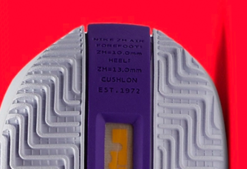 采用了前后掌分离的 Zoom Air 气垫,前掌气垫 10mm 厚,后掌气垫 13mm 厚。